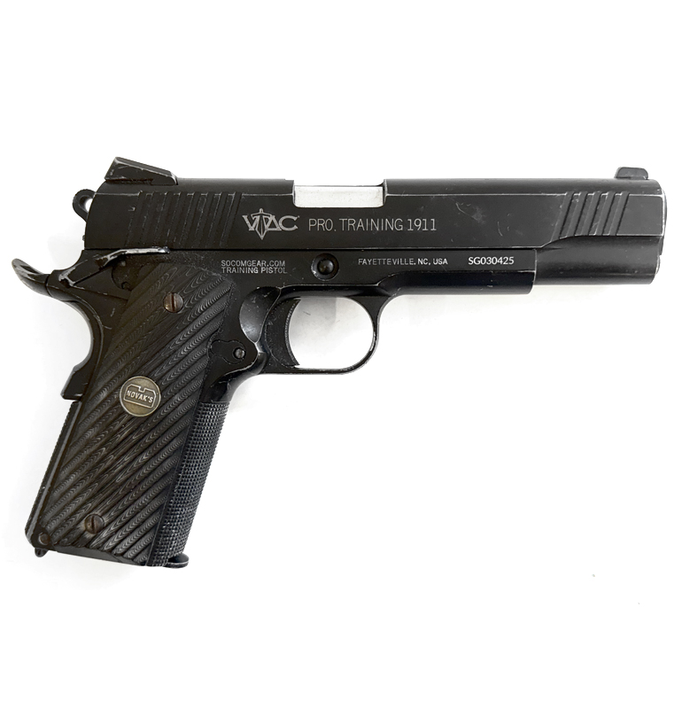 Pre-owned Socom Gear 1911 pistol. Some wear marks around the pistol & magazine from general use & holstering. Adjustable hop-up system will allow the pistol to run a variety of BB weights. Functions flawlessly, magazine seals perfectly and has no gas leaks.